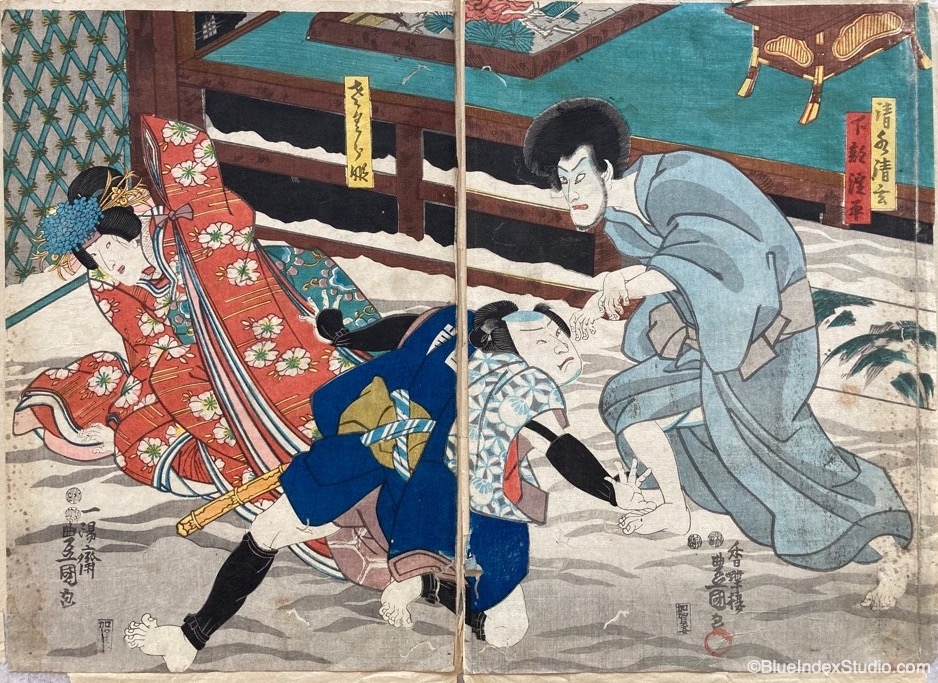 ついで2番は広重5,776枚.、3番は国芳3,794枚、4番目初代豊国(国貞の師)1,563枚、5番目国周1,298枚、6番目北斎1,267枚…と続く。